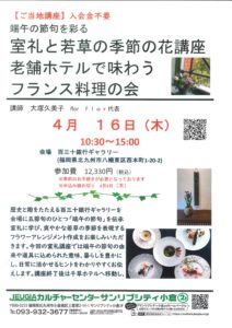 🔴日 時 4月16日(木)10時30分~12時30分 (食事を含む終了時間 15時)